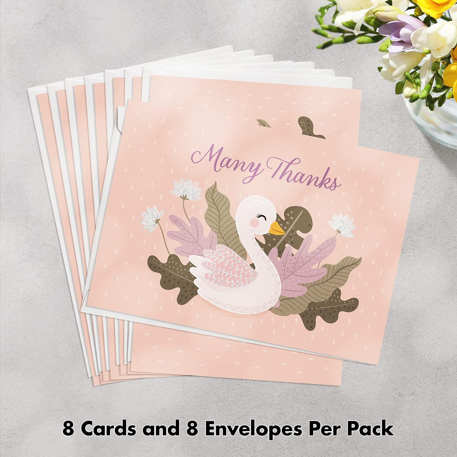 PERFECT CHOICE TO GIVE THANKS – With an adorable glitter-accented swan design, express your appreciation to your loved ones for their thoughtful gesture with this set of 8 thank-you note cards. Perfect for a baby shower, birthday or any gift giving occasion, each card comes complete with a printed heartfelt sentiment, while still leaving you enough room for your own personal message!