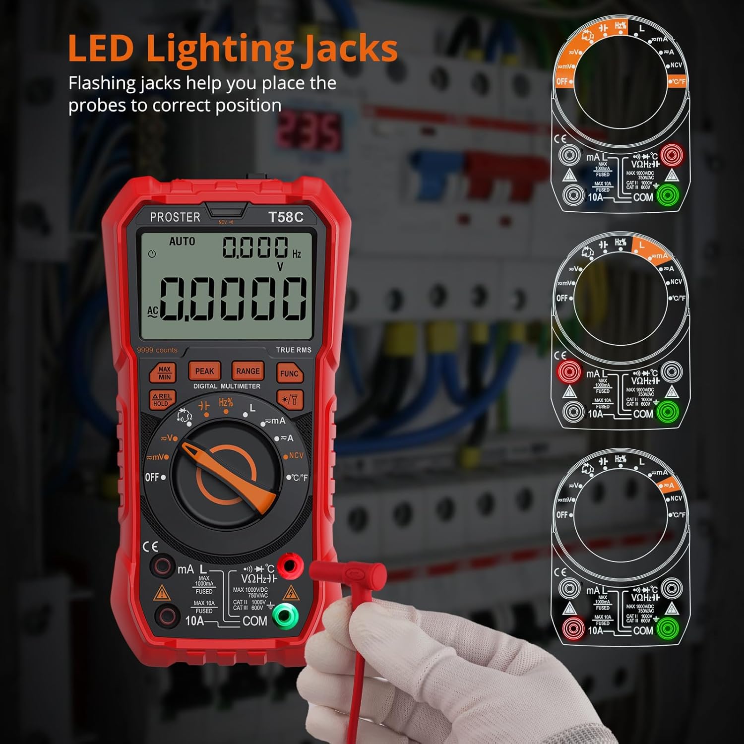 【Versatile Digital Multimeter True RMS】— This Professional Multimeter Tester Can Measure AC/DC Voltage&Current, Resistance, Capacitance, Frequency, Duty Cycle, Temperature and Inductance. Featuring True RMS for Precise Readings on Non-Linear Signals and a Large 9999-Count Display with Analog Bar, It’s Essential for Electricians, Automotive Diagnostics, and Lab Work