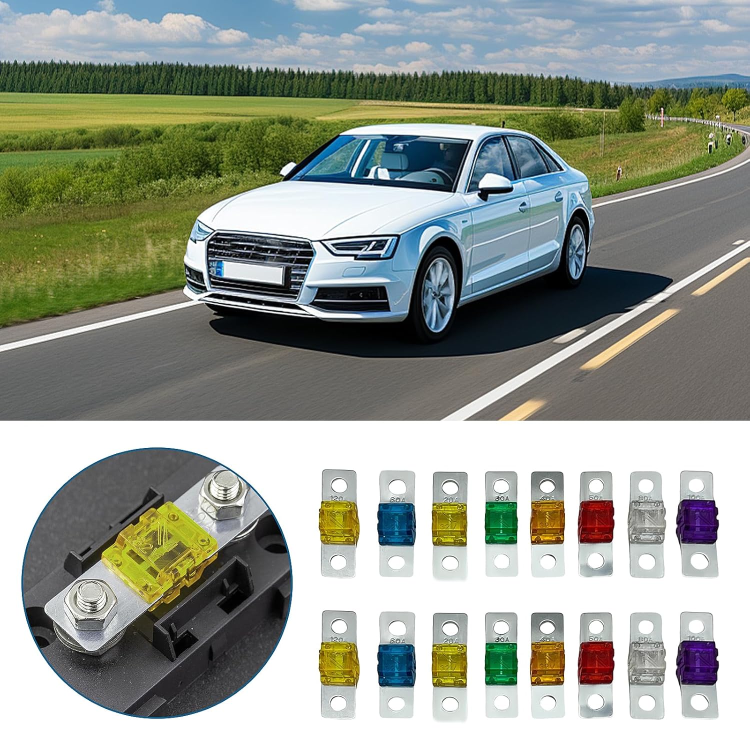 16 pcs midi fuses, 32v midi fuse 20/30/40/50/60//80/100/120 amps automobile high current fuse for car marine truck marine electric hybrid vehicle motor