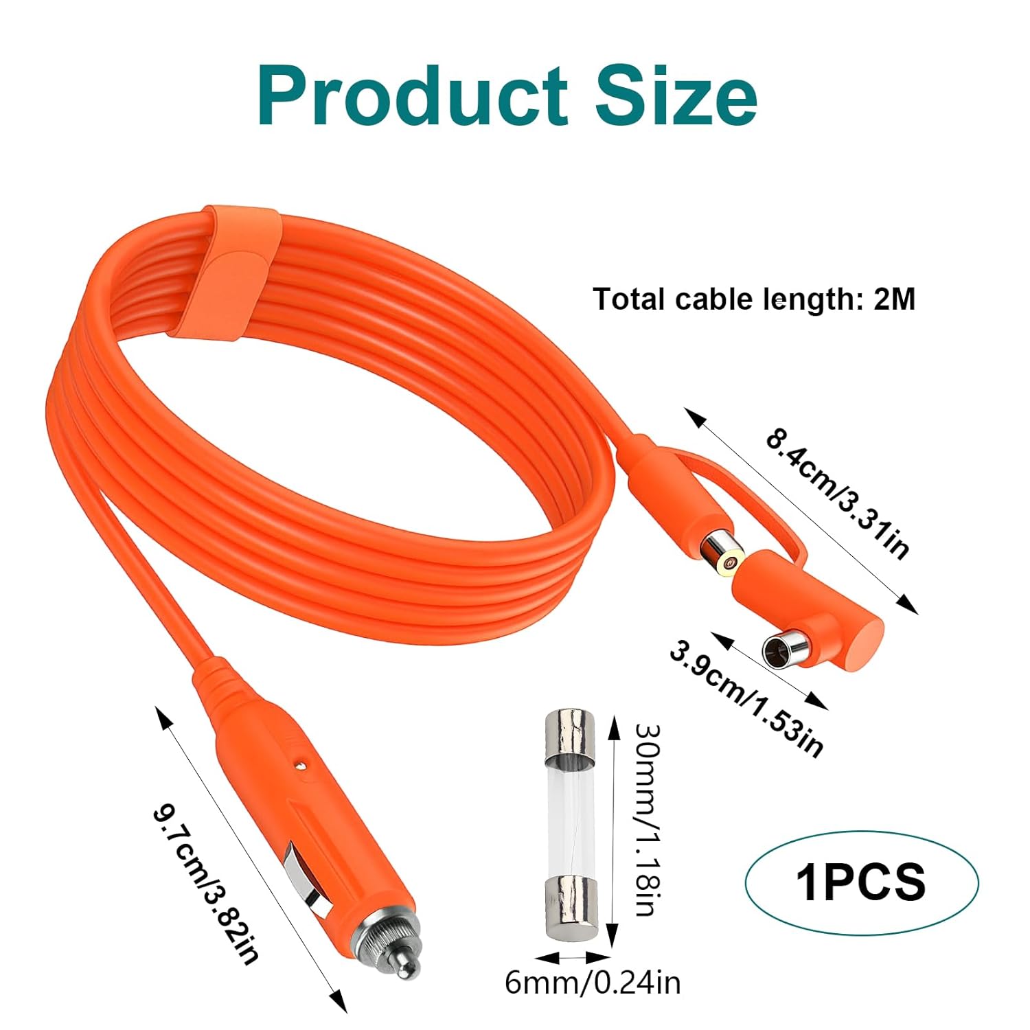 Plug-and-Play with Extended Reach and Accessories: With a total length of 2 metres (6.56 ft), this plug-and-play charging cable for Jackery offers excellent flexibility in setting up your power station inside or outside your vehicle. Package includes 1x car charger cable and 2x replacement fuses