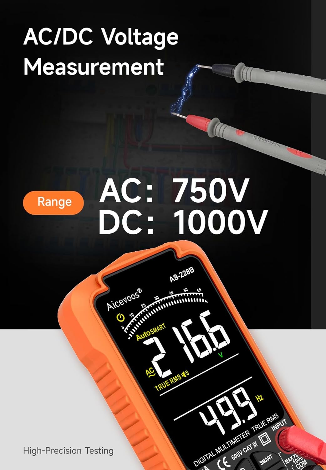 Aicevoos AS-228B Smart Digital Multimeter, Auto-Ranging Volt Meter, TRMS 6000 Counts Voltage Tester Measures Voltage, Capacitance, Frequency, NCV, Ohm, Continuity, Diode, Live Wire for DIY