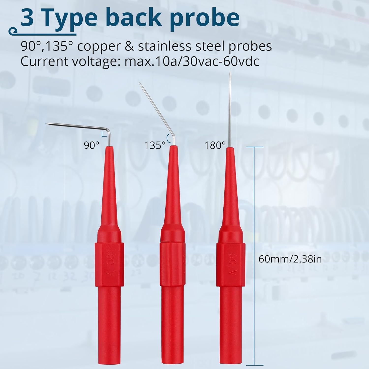 Versatile Measurement Angles: The back probes in the kit offer three measurement angles (90°, 135°, and 180°), catering to diverse testing requirements. Crafted from robust copper and stainless steel, these probes ensure accurate measurements, and the high-precision copper flexible wires contribute to measurement accuracy