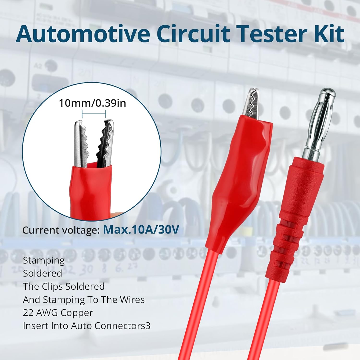 High Reliability in Various Environments: Probes and alligator clips operate smoothly under a maximum current voltage of 10 A/30 Vac-60 Vdc, ensuring high reliability in electronic device testing, electrical engineering and maintenance, and automotive diagnostics