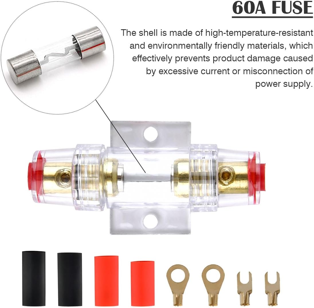 Power amplifier cable set equipped with a 60A fuse holder, which can effectively prevent the audio from being damaged by overload current.