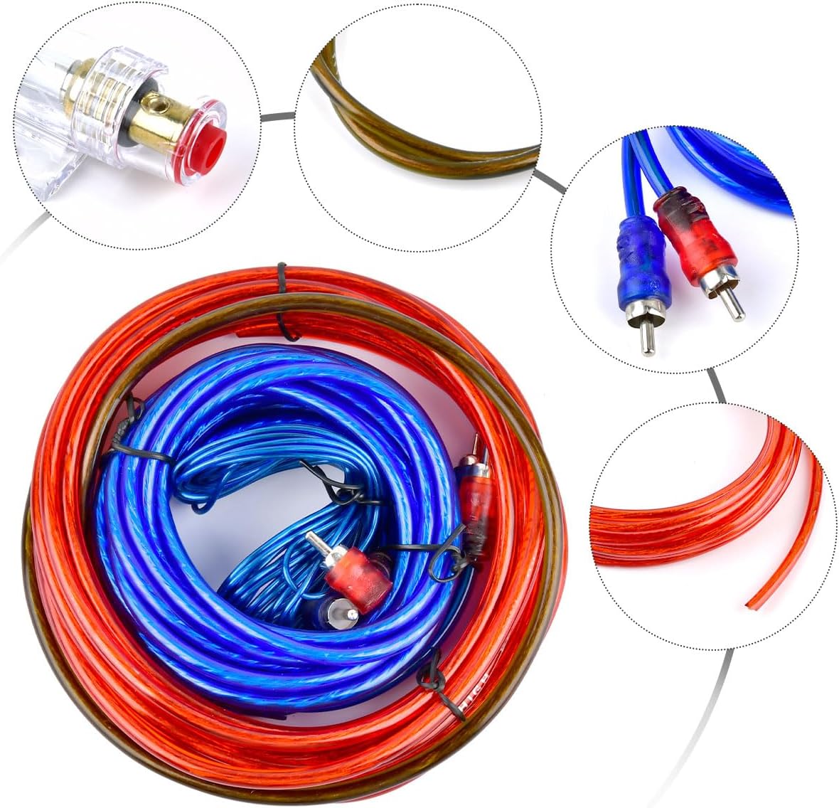 Car Audio Wiring Kit Amplifier Cable Kit 1500 Watts Car Stereo Subwoofer Installation with Fuse for Car Truck Motorcycle 10 Gauge Amp