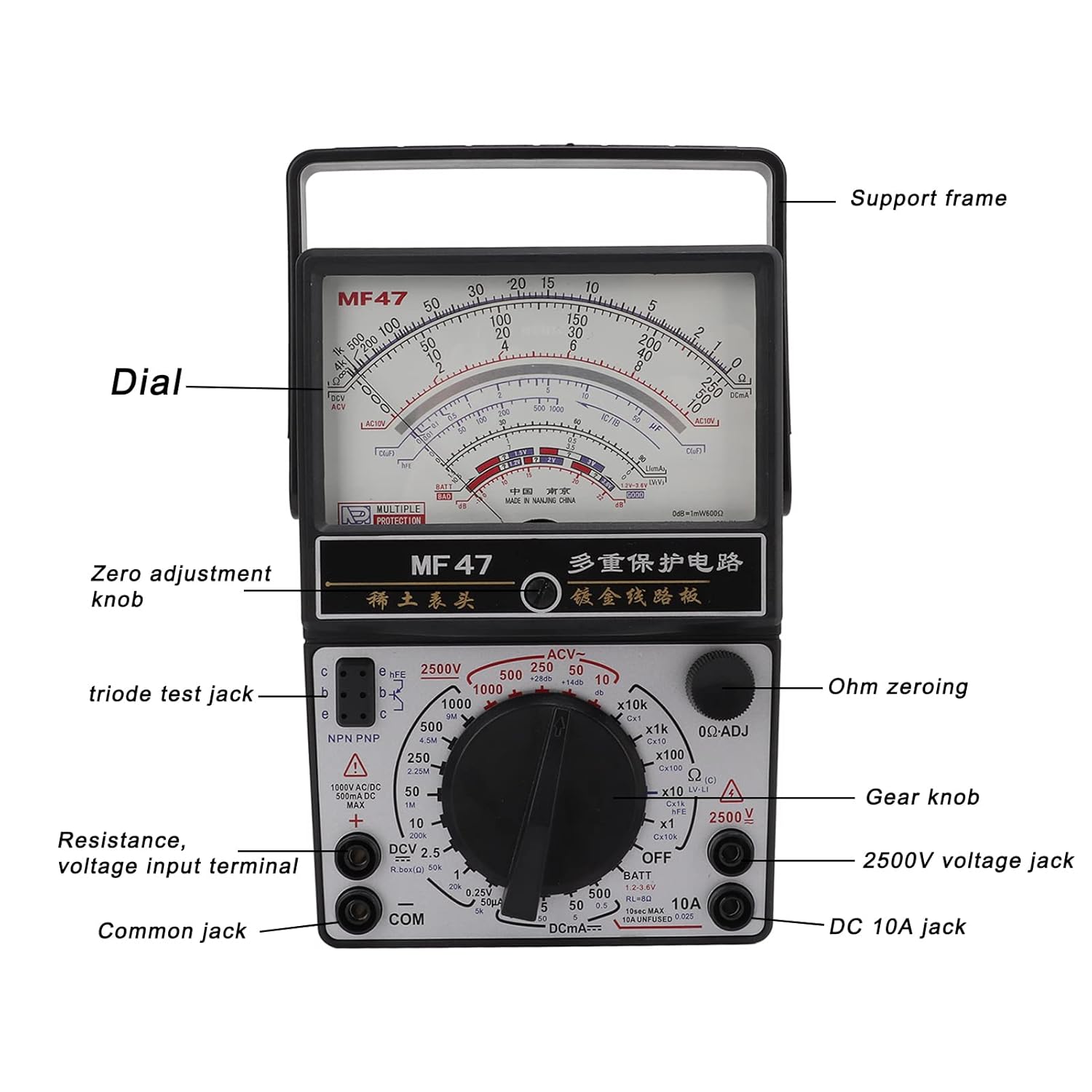 [Durable Material] Pointer type multimeter is made of high quality ABS material, which is safe, durable, stable performance, and can be used for a long time.