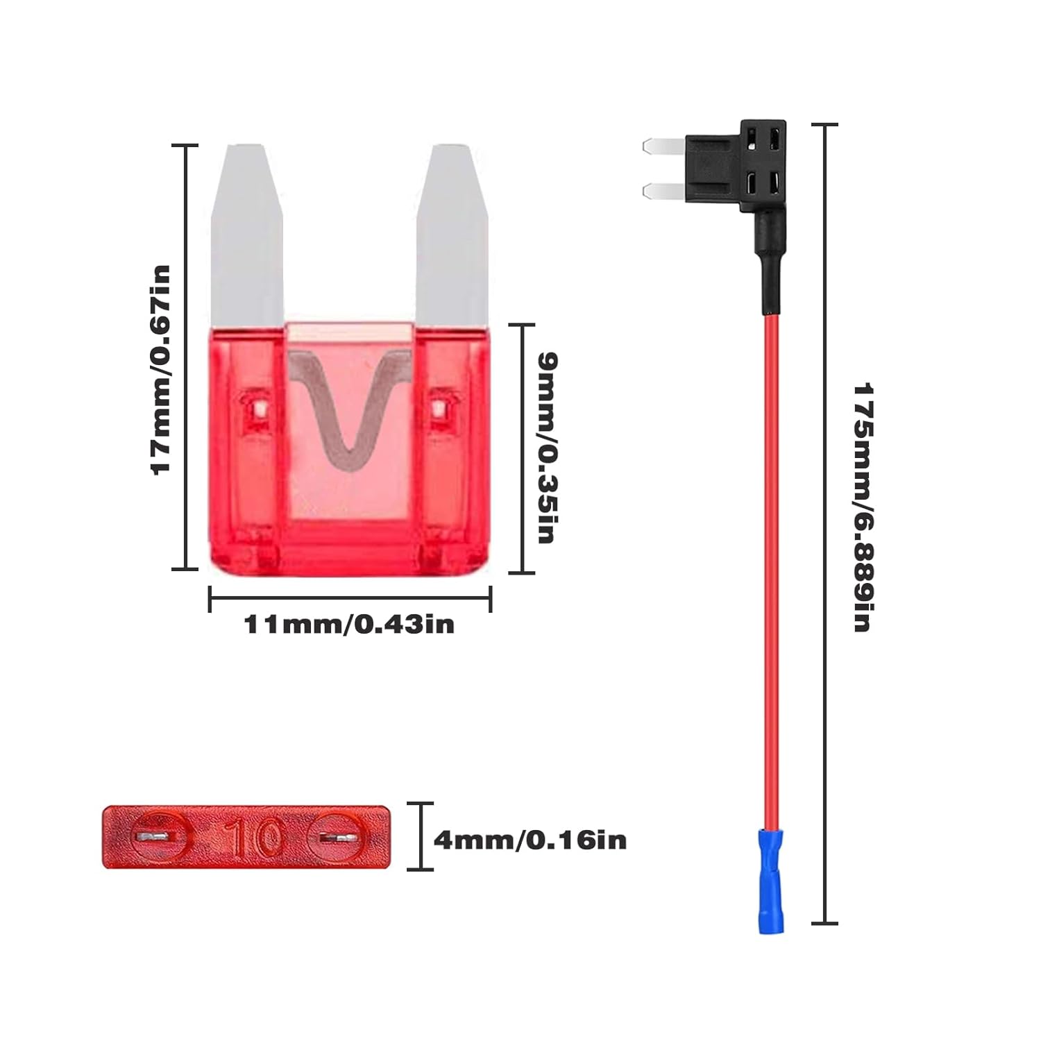 AUKENIEN add a circuit fuse tap adapter – 16 AWG wire – Mini piggy back fuses