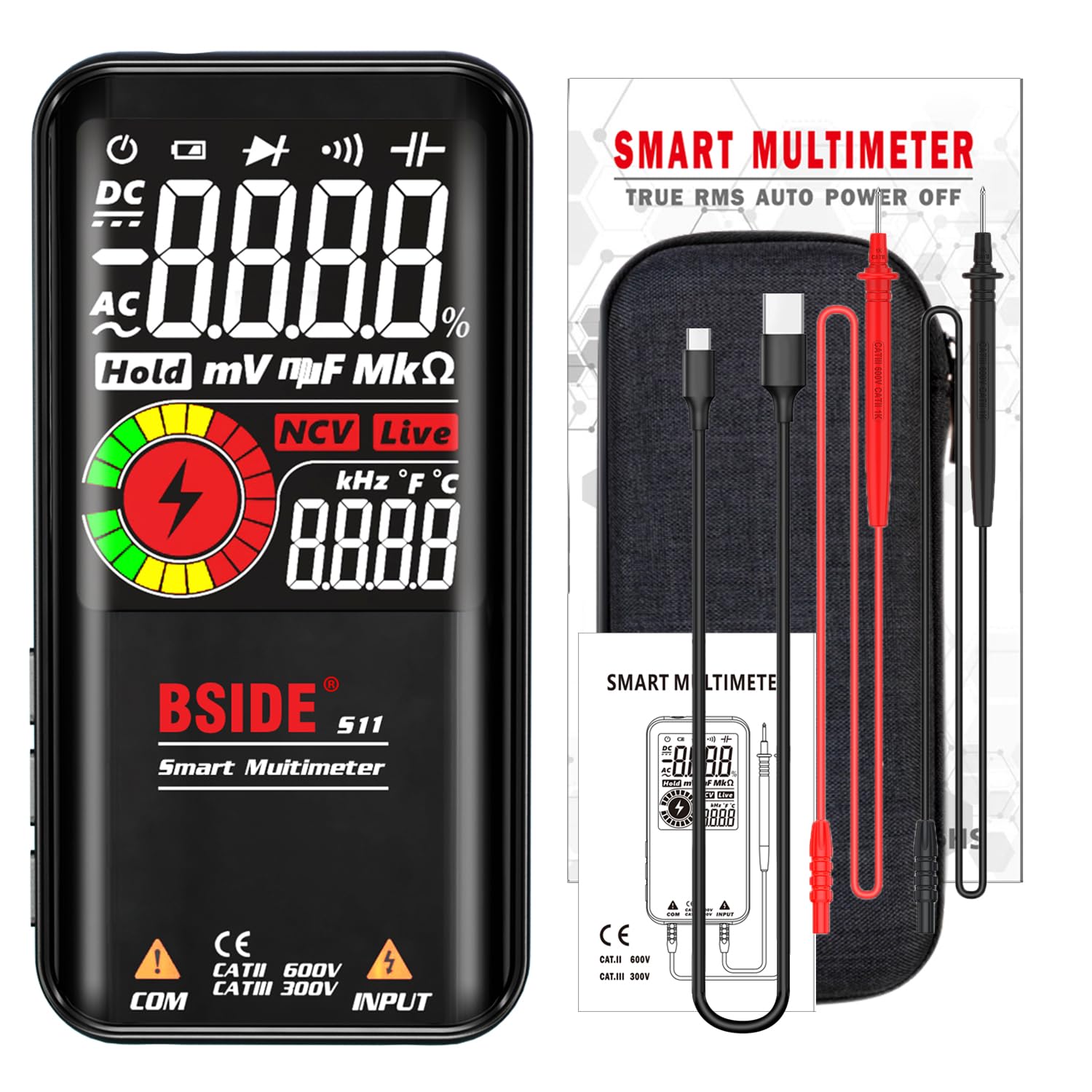 Our rechargeable version of BSIDE S10, this S11 smart multimeter is designed for both electricians and beginners. It can automatically identify the parameters under test and select the required range, you don’t need to do anything else. It features:
