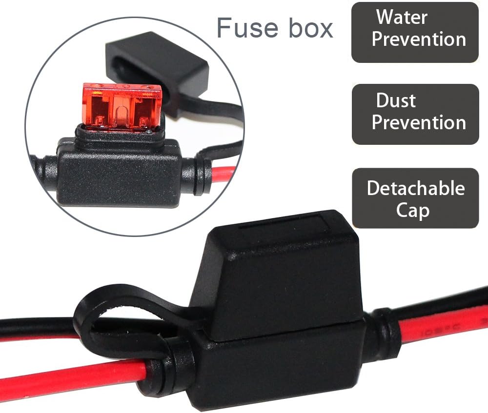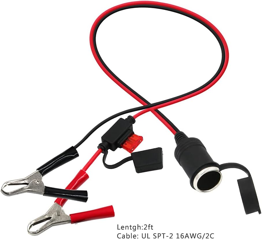 Car Cigarette Lighter Alligator Clips Extension Cable – 2ft / 0.6m Clip-on Plug Socket Outlet Dustproof Waterproof Safety Adapter 12V/24V Extension Cord with Fuse Holder Power for Car Battery Charging