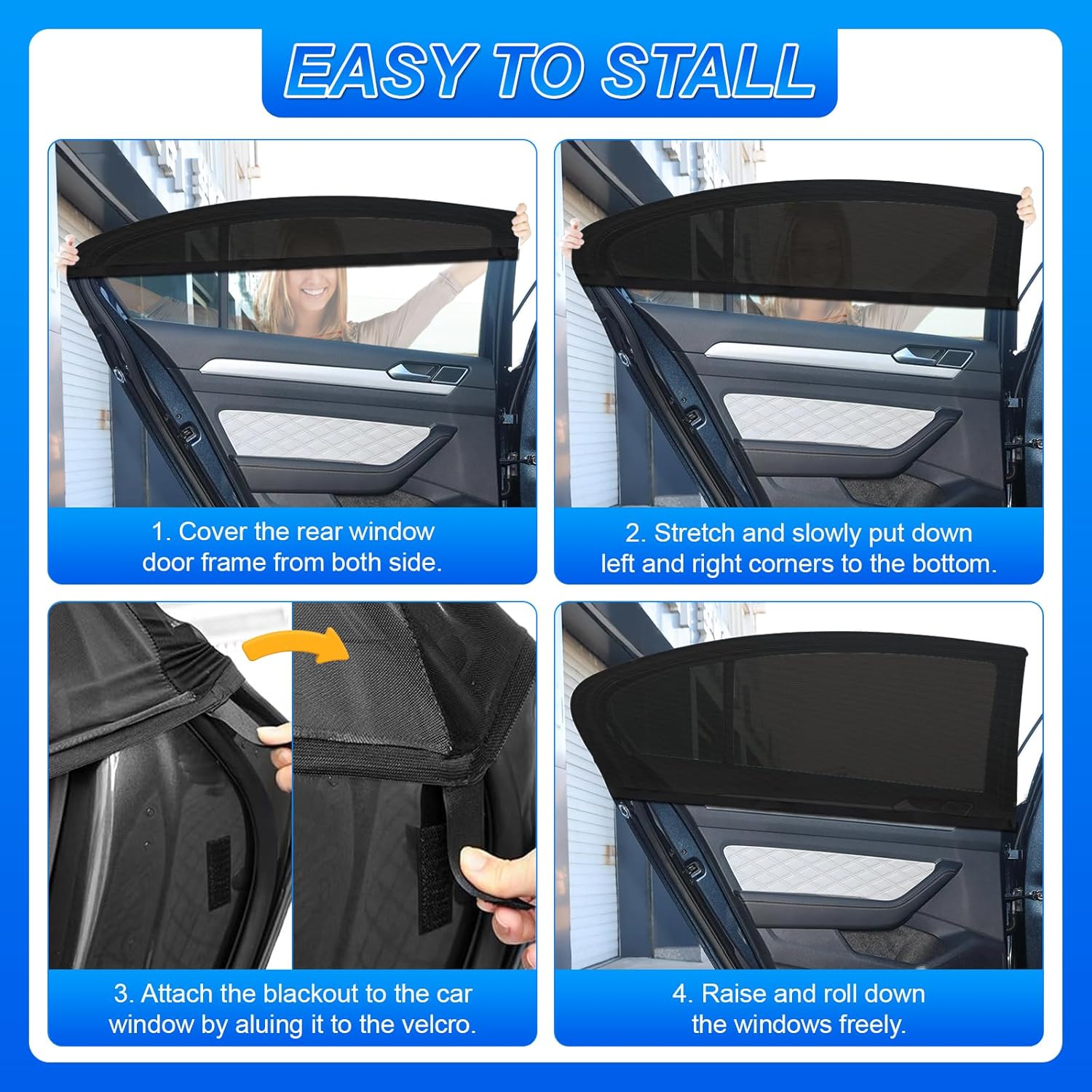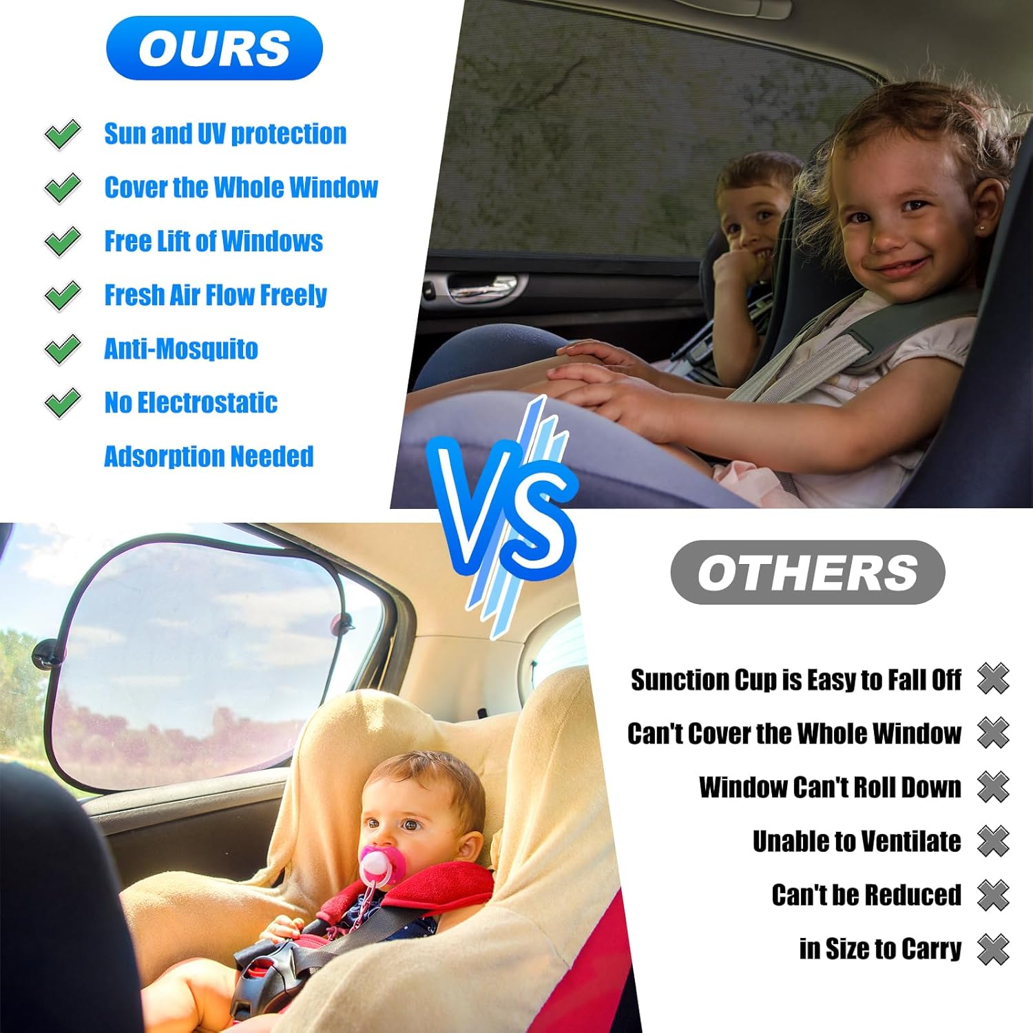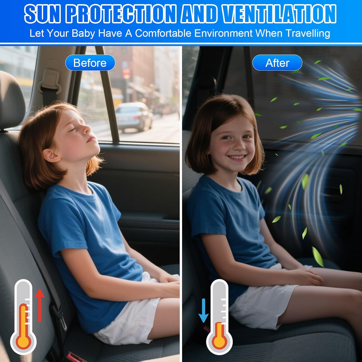 【UV Protection/Insect & Protect Privacy】Maximum protection for your children and pets from UV radiation,avoid bugs flying into the car; Car shades for baby can provide us with a certain degree of privacy,you can sleep, watch videos, work and breastfeed your baby.
