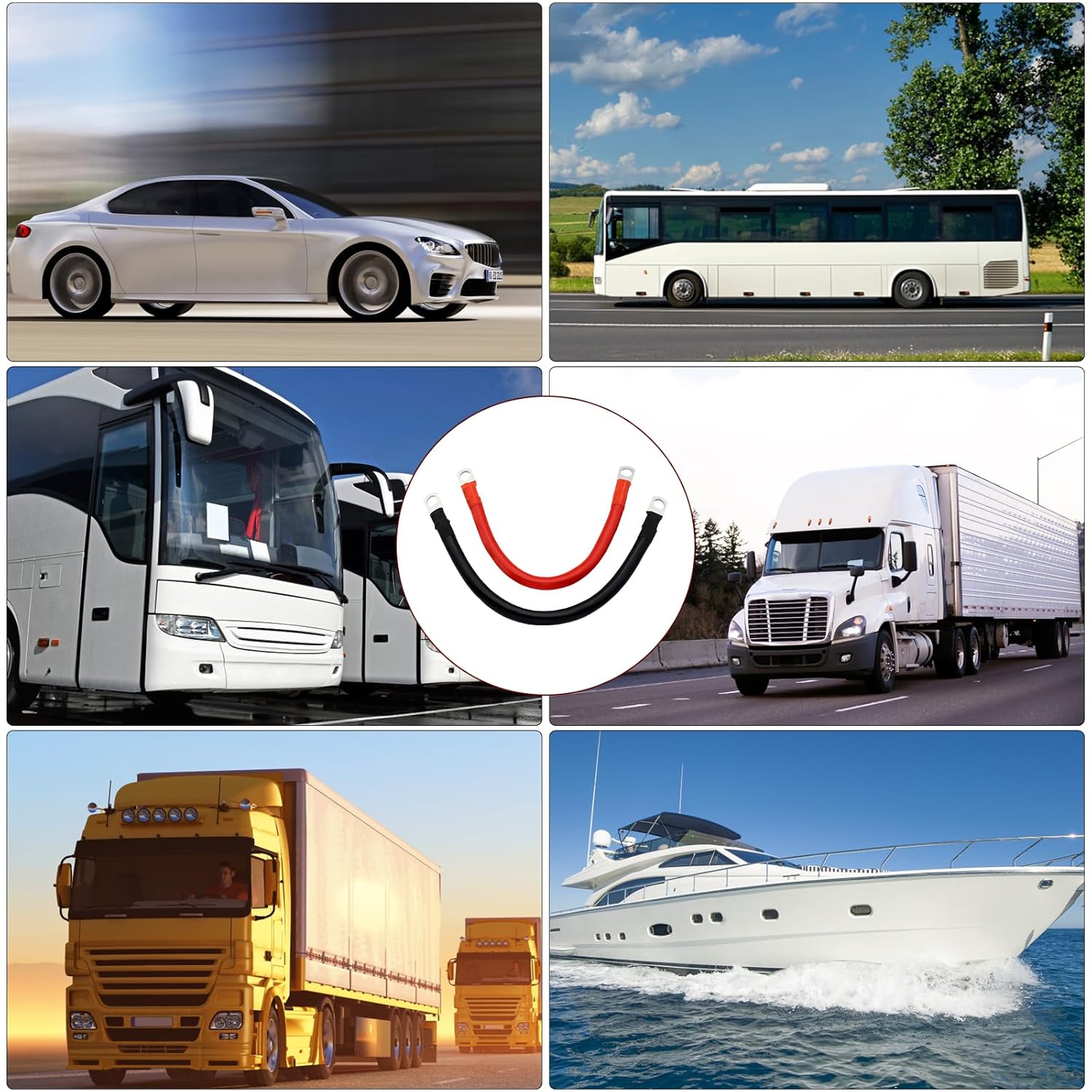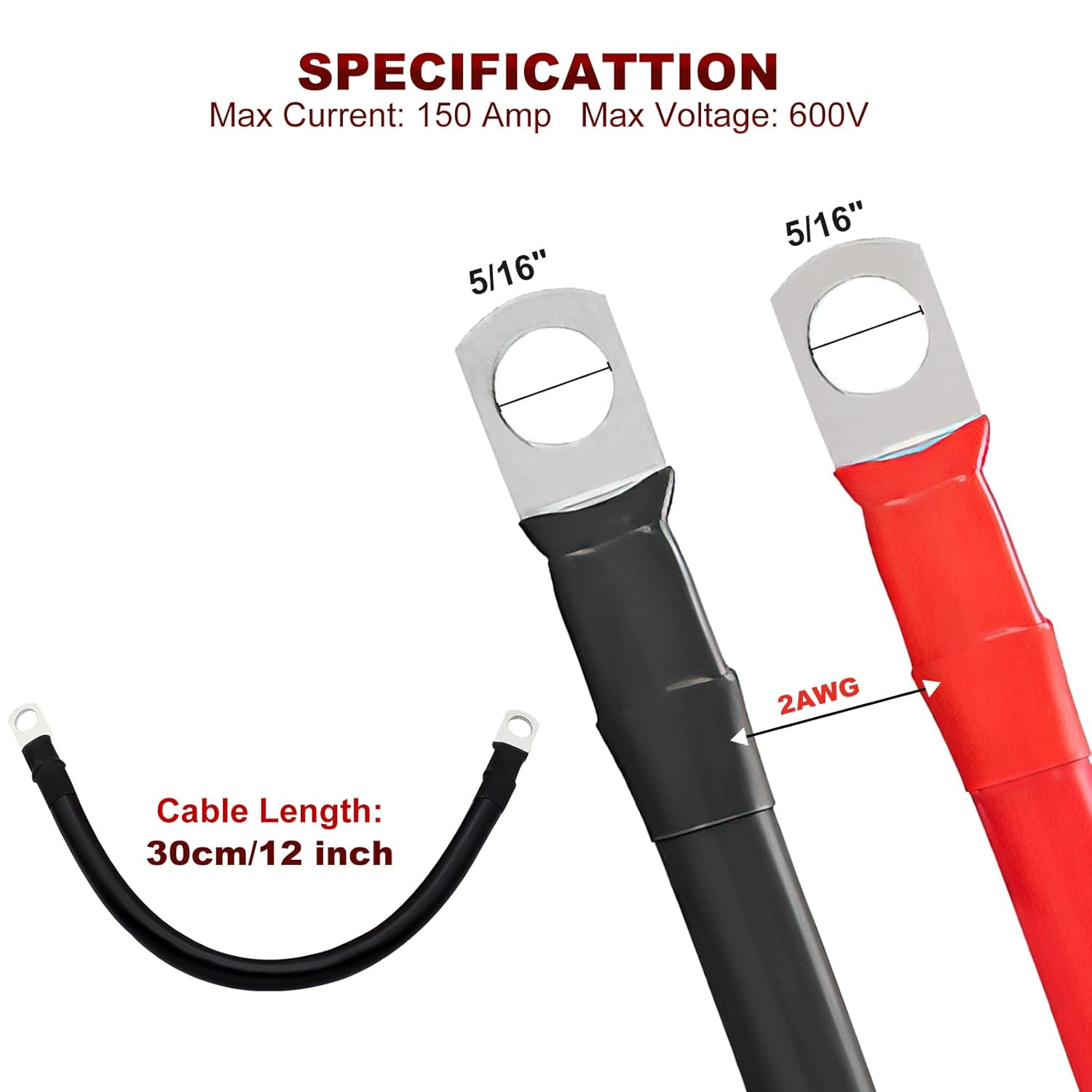 【Heavy Duty Safe Cables】 30CM Auto battery cable is a 2AWG cables, contained a set of positive(red) and negative(black) battery cables, suit for connecting batteries in parallel or series.