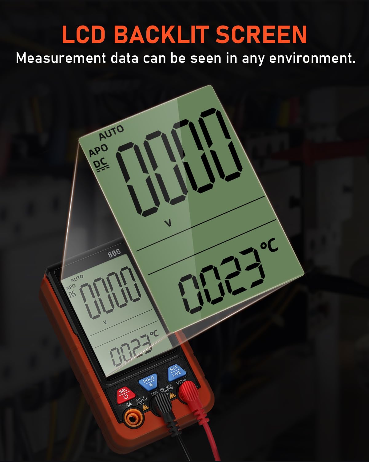 BACK SUPPORT FEATURE — The multimeter features a back stand at a 45-degree angle for hands-free use. Comes with a silicone protective case for enhanced drop resistance.