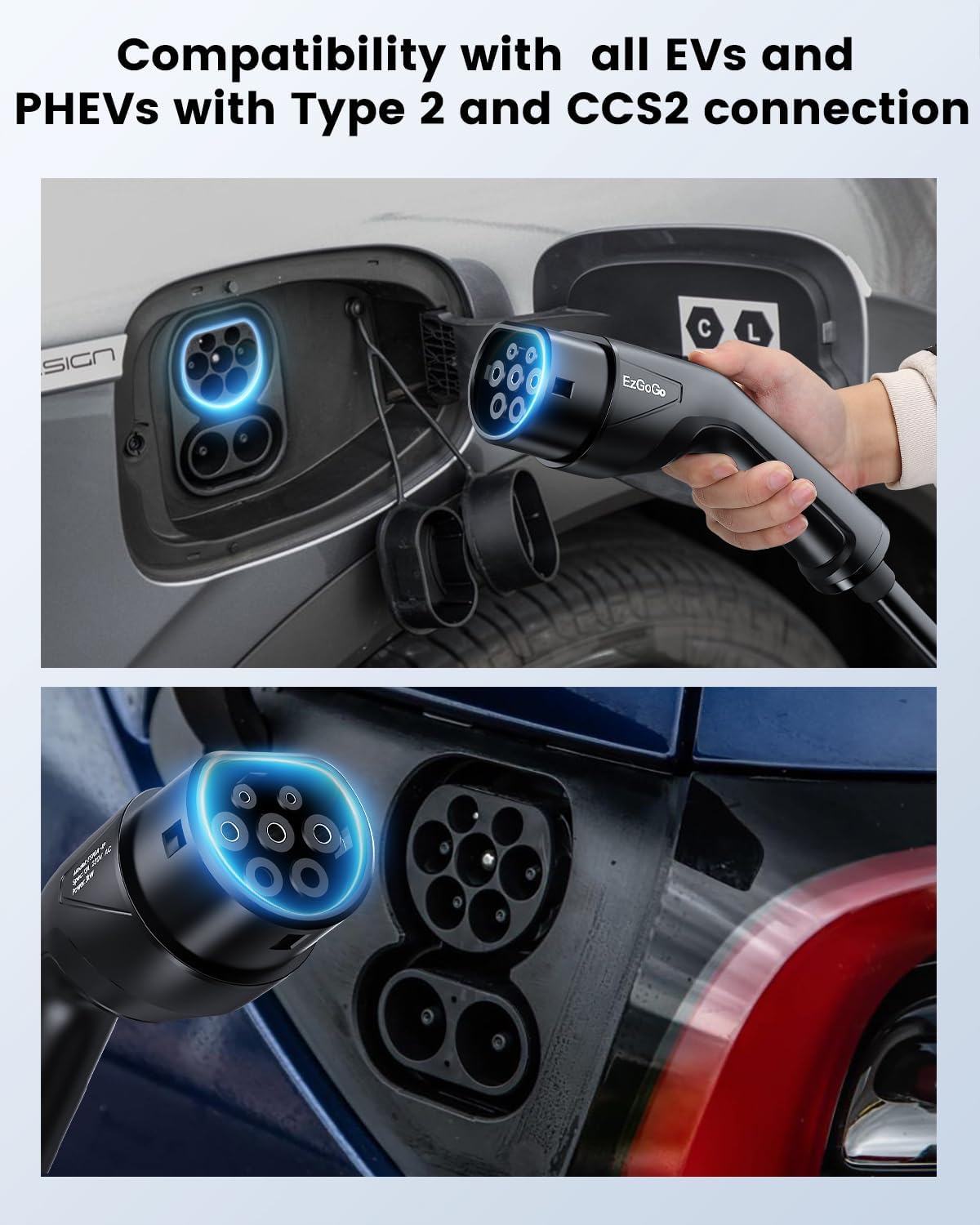 Wide compatibility: EV charger cable type 2 to 3 pin plug can charge your electric vehicle anywhere with a compatible 3 pin socket. The Electric Vehicle Charging Stations is suitable for most European and UK EVs and PHEVs that comply with IEC 62196-2. However, we recommend that you check the specifications of your vehicle or contact our customer service to ensure compatibility, especially for specific models and maximum charging currents.