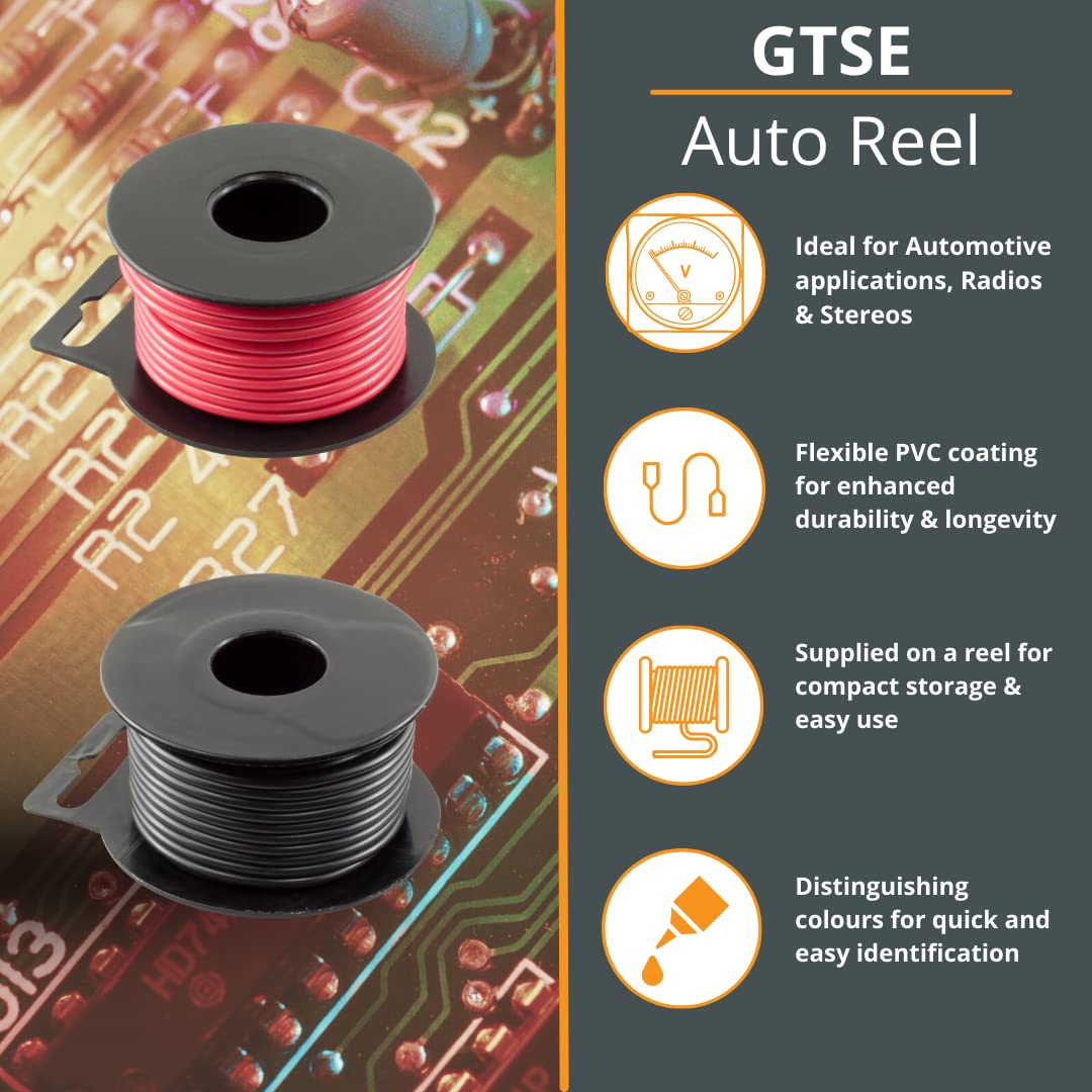 GTSE 19 AWG 0.65mm², Auto Cable – Single Core, 5A 7m Black Cable Mini Reel Electrical Wire, 9 Copper Strands 0.29mm Each, Ideal for Automotive applications, Radios and Stereos