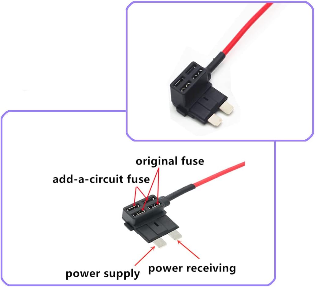 2. The add-a-circuit fuse adapters prohibit the use of high current fuses. If the fuses exceed the 15A fuse, you need to do the heat test. 15A is to be able to drive electric tire inflator, we generally use an add-a-circuit fuse adapter to connect three devices: recorder, electronic dog, navigator etc. at the same time, and 7.5A is enough. If add equipment, you need to add one more add-a-circuit fuse adapter, that is to use 2 add-a-circuit adapters.