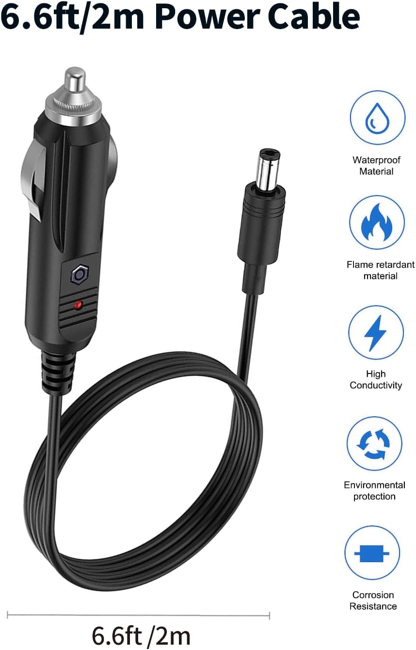 With LED Indicator: Lonnky 12V car power adapter with built-in fuse and LED light; Protects against short circuit damage; Replaceable fuse