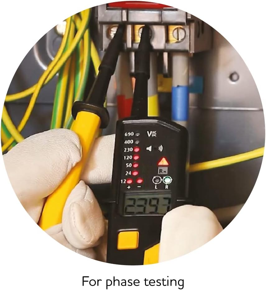 The VT28PD-S Voltage Indicator and Proving Unit is packed with useful diagnostic test features with the added benefit of an LCD to show a specific voltage as well as the voltage level. The kit fully meets the requirements of GS38 and Proving Dead procedures. The tips of the probes on the VT28 are shrouded to meet GS38 standards and can be removed temporarily for access to deep or difficult to reach test points. The tester can measure voltages between 12v and 690v and voltage levels are indicated by bright LED’s. The continuity Test (with buzzer) function makes the VT28 very useful in many diagnostic applications too. It can perform a Single Pole Phase Test, however, two-pole voltage indication should always be the preferred method for proving dead. The Phase Rotation test feature allows Phase to Phase voltage measurement and Phase Rotation is indicated on the unit via the “L” or “R” LED’s. As with all 2-pole Voltage Indicators, the VT28 should be proved before and after use. The PD690S which is housed in the tailor-made carry case incorporates access holes, in the transparent panel, to the test points on the proving unit. A shoulder strap on the carry case offers convenience and protection when not in use.
