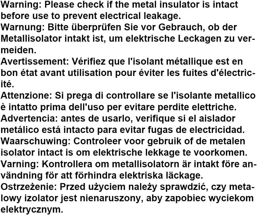 ★Fully enclosed insulated handle: The insulated handle is fully surrounded by high-quality soft rubber material to avoid leakage damage.