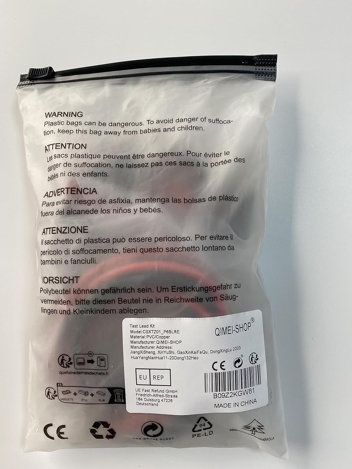 Test Probes: Nickel-plated copper multimeter test probe, nylon protective shell, rear jack diameter 4mm, 0.7mm needle, easy to pierce without damage. Voltage/Current: 30V AC/1A max.