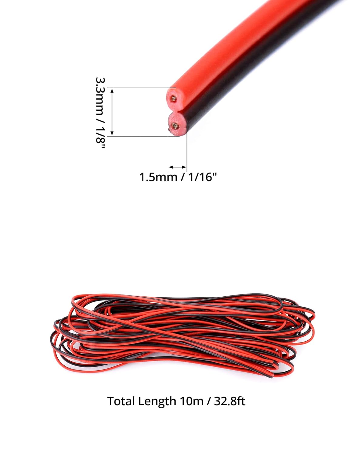 2 Conductor Parallel wires: Two-core cable wires red and black are easy to distinguish, easy to separate, total 20 meters (65.6 feet), black and red each 10 meters (32.8 feet)
