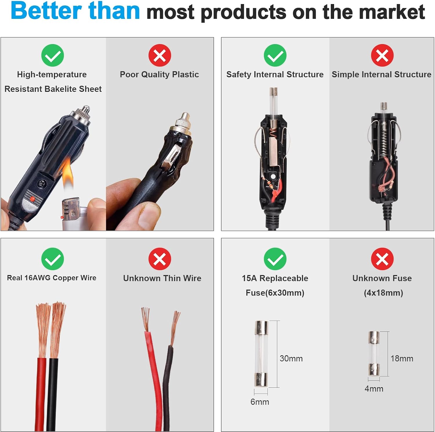 【Cigarette Lighter Extension Cord】1.8m/6ft long 12/24V 16AWG cigarette lighter extension cord with replaceable 15A fuses, suitable for all electronic products in your car.