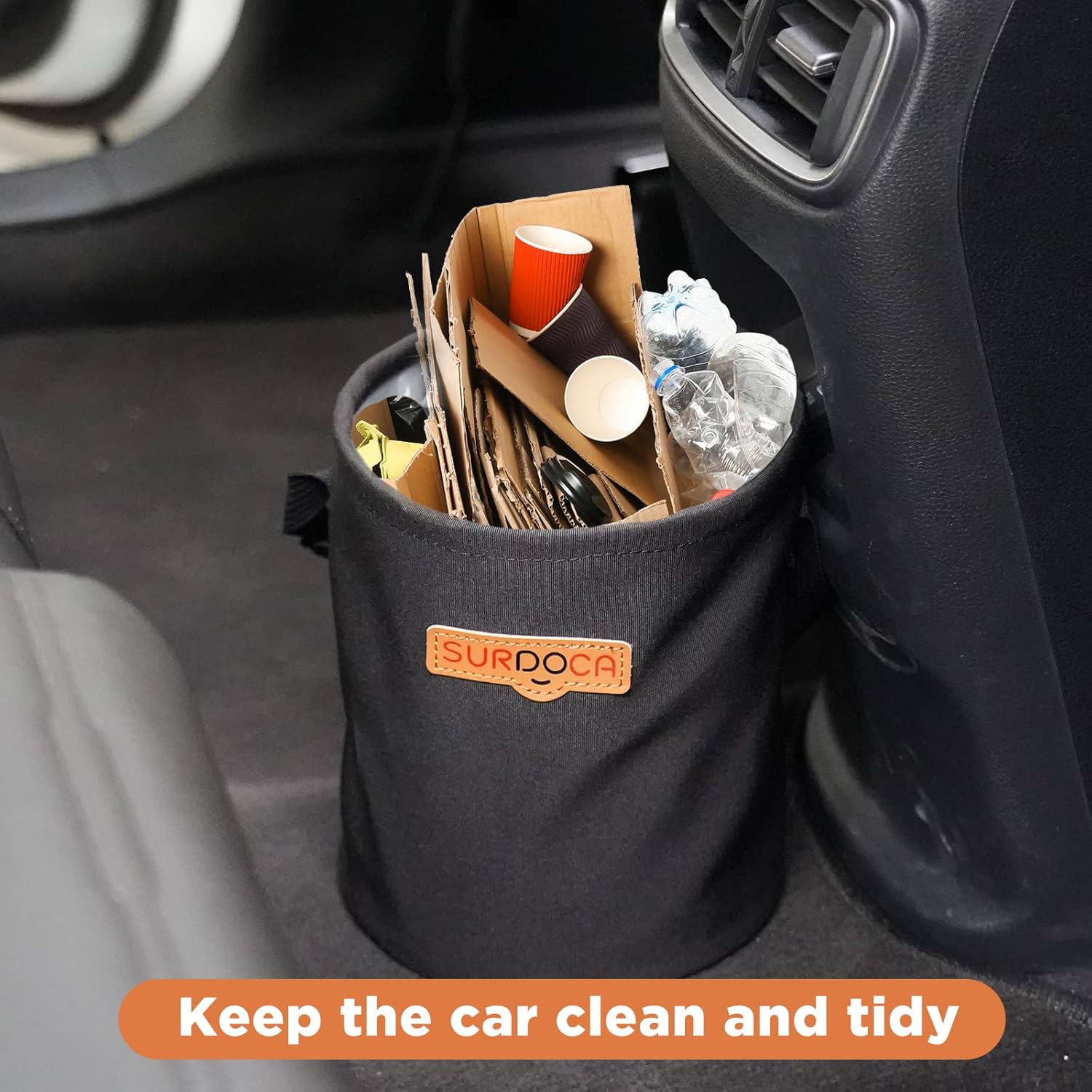 SURDOCA Waterproof Leakproof Car Bin Tidy, Portable Vehicle Rubbish Bin Hanging, Collapsible Automotive Bin Bag for Back of Car, Adjustable Automobile Trash Can, Convinient Car Garbage Trash Bin Black