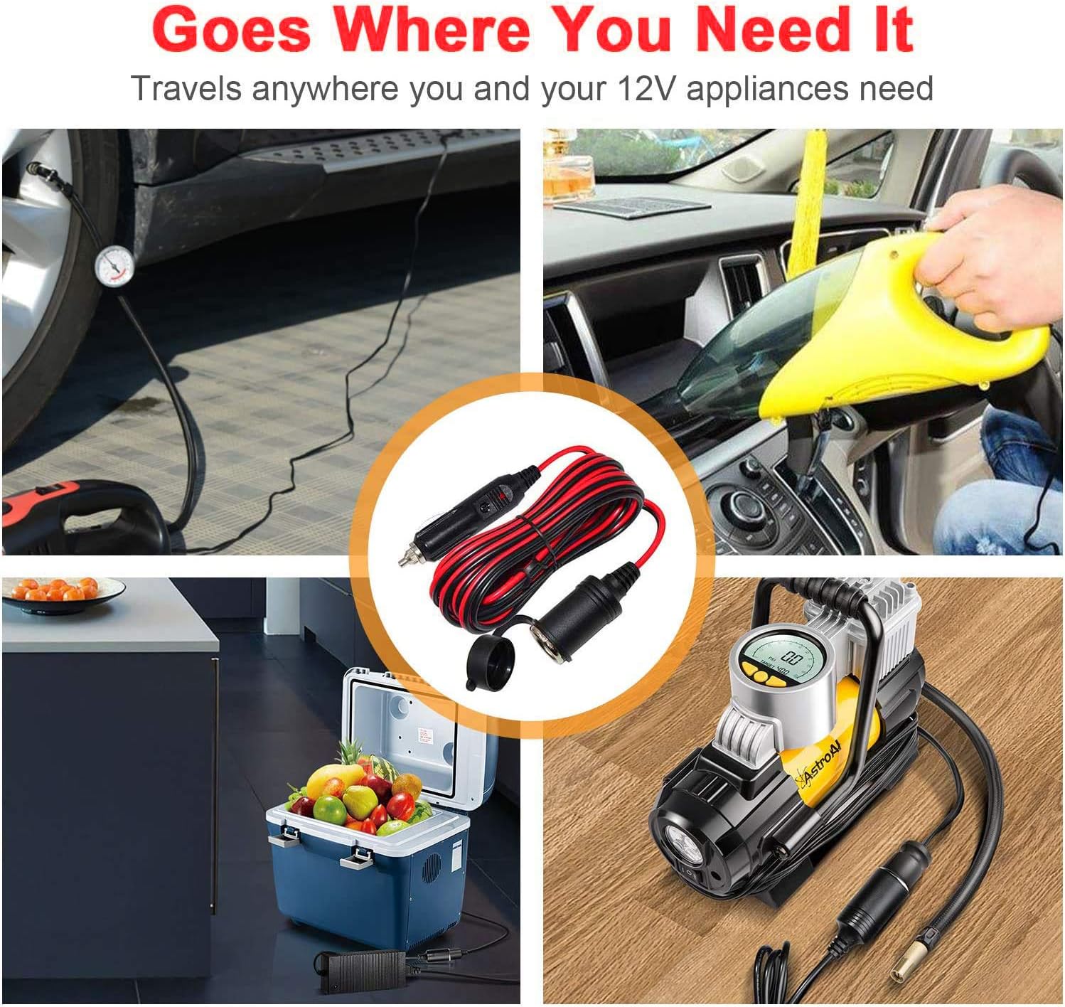Wide Application: This cigarette lighter power cord is suitable for cars, RVs, trucks or tire pumps, electric blankets, portable TVs, portable refrigerators, fans, lights, car air purifiers, and other 12V/24V car kits.