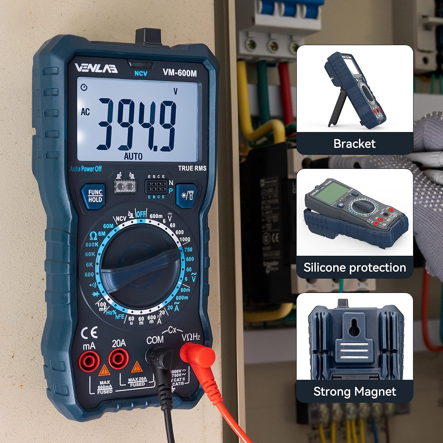 VENLAB Digital Multimeter, TRMS 6000 Counts Manual Range, DC AC Volt Ohm Circuit Tester for Voltage, Current, Resistance, Diodes Continuity, Capacitance, Frequency, NCV, Continuity