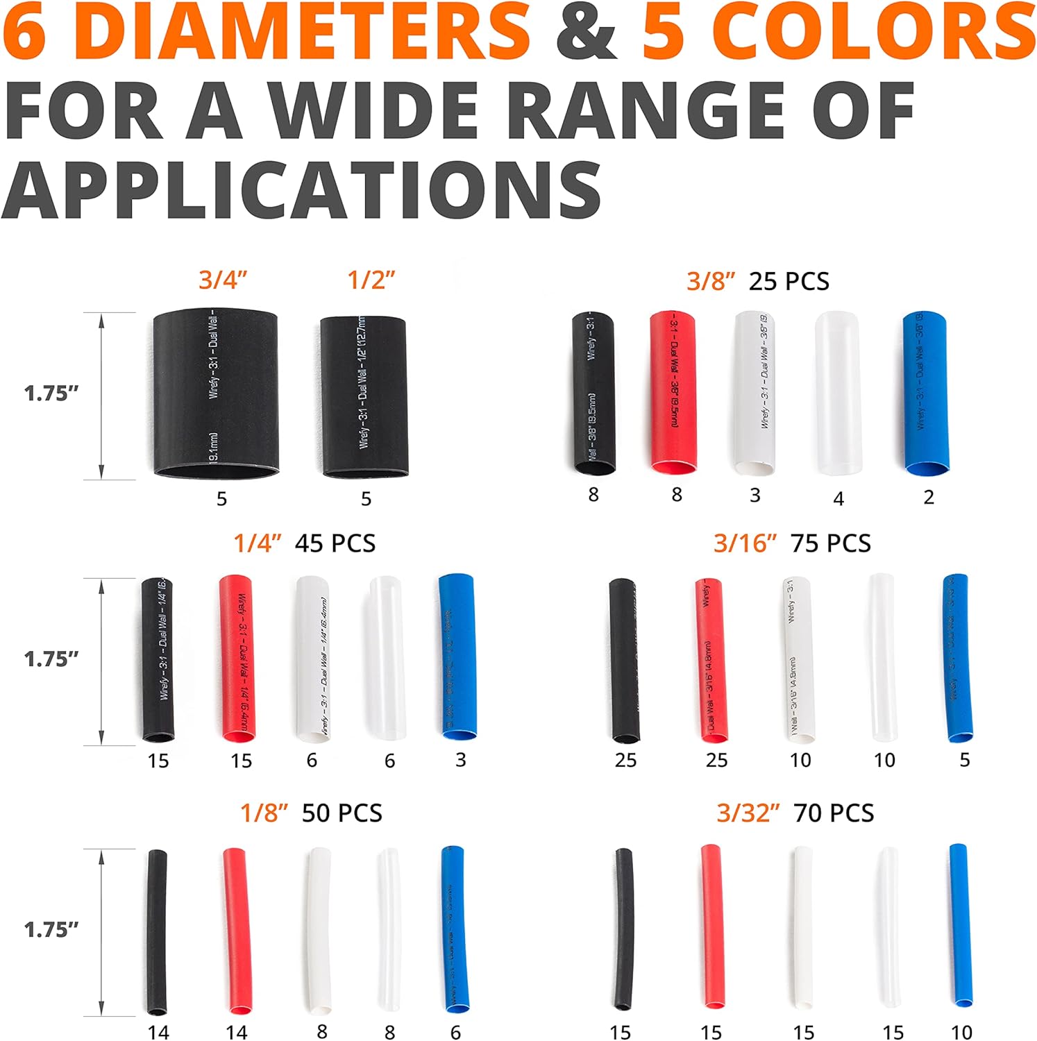 Variety of Sizes: We have included 7 most commonly used diameters ranging from 3/32″ to 3/4″. Shrink tubing is precut to 1.75 inches.