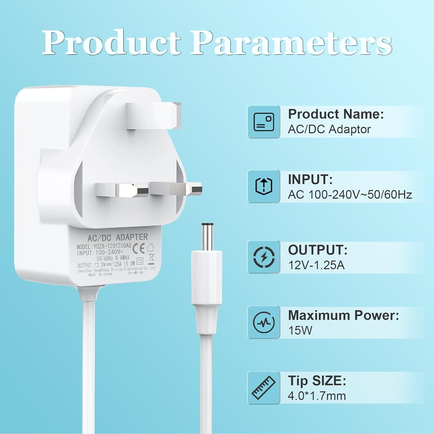 ✅ 【Power Specification】:Input AC 100-240 volts, 50/60 hertz; Output DC 12 volts, 1.25 amps, 15 watts, Cable Length: 1.5M.