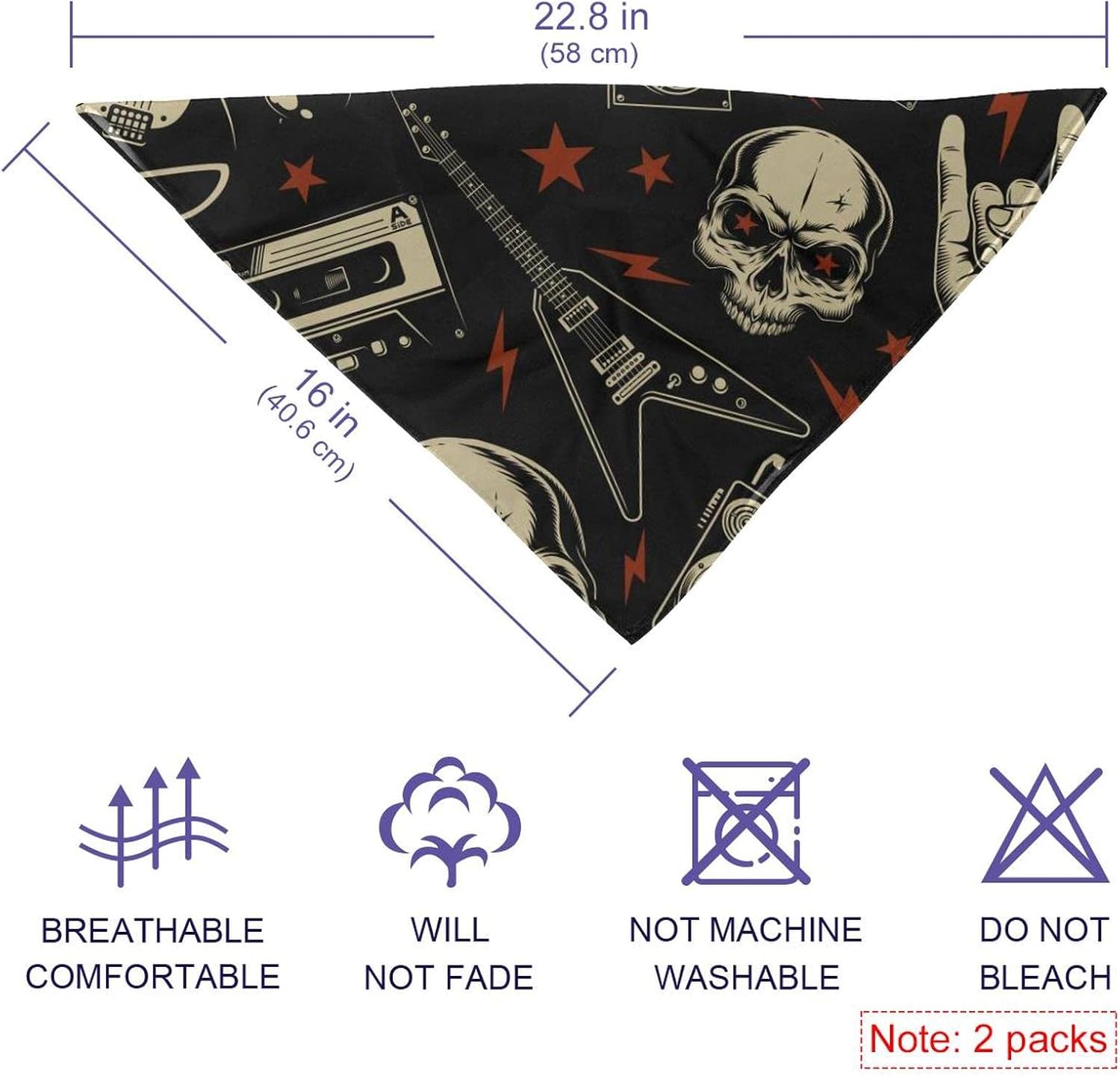 2 Pack Dog Bandana Skulls Rock Pattern Retro Girl Boy Pet Bibs Dog Scarf Kerchief Washable Bandanas Accessories for Small Medium Large Dogs Puppy Cat Pet