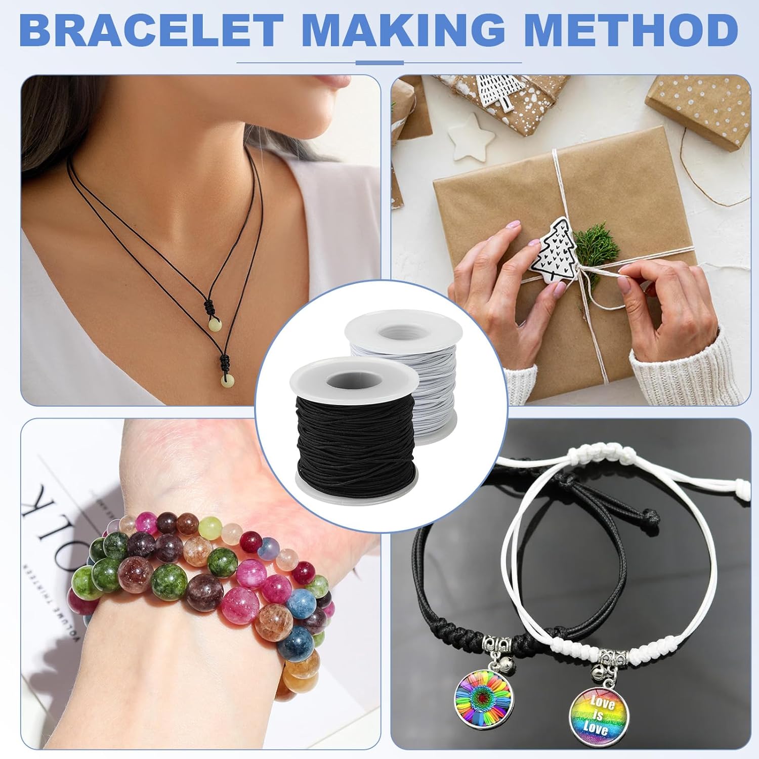 【Package Contents】 You will receive 1 roll White elastic cord and 1 roll Black elastic cord, each roll is 1mm X 50M, 1 Handmade small scissors and 1 Beading wire. The beading elastic cord we provide is enough to meet the needs of large projects or multiple uses, avoiding frequent replacement.