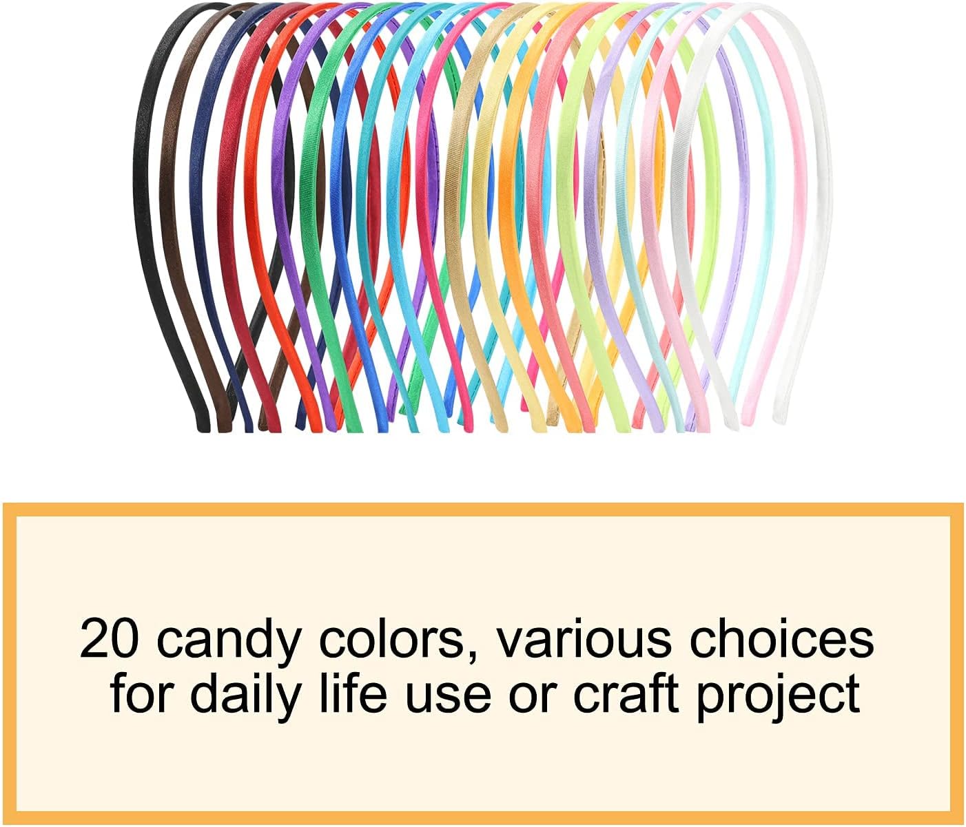 20 Pack Women Colorful Plain Blank Cloth Fabric Covered Slim Thin Hard Black Metal Headband Hairband Elastic Hair Hoop Holder Clasp Tiara Crown Headpiece Accessories DIY