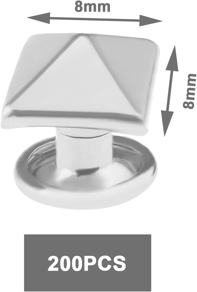 200pcs Pyramid Rivets Spike Square Studs Rivets Spike Screw Craft Punk Novelty Jewerly Accessories DIY Decoration For Leather Clothing Shoes 8x8mm, Silver