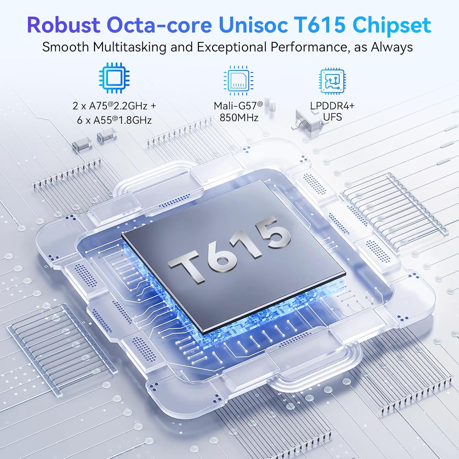 High-Speed Connectivity – Octa-Core Power + 4G LTE& 5G WiFi Powered by a T615 Octa-Core processor, this tablet delivers 30% faster app launches and processing speeds compared to previous models. 5G WiFi ensures ultra-fast streaming and downloads, while 4G LTE support keeps you connected anywhere—perfect for travel, remote work, or on-the-go browsing.