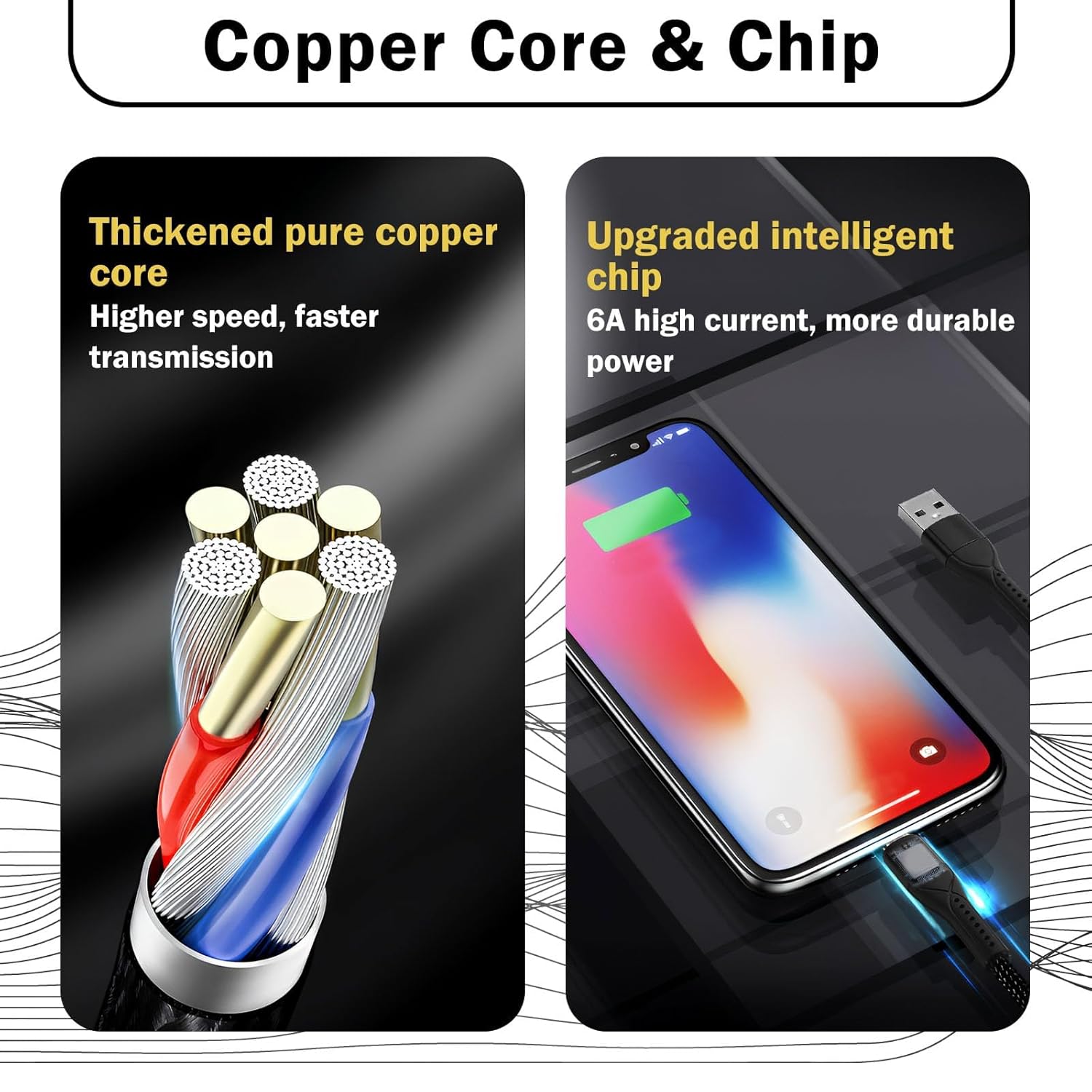 High-Quality Materials:This charger cable adopts a solid wire core and a high-quality aluminum shell to ensure safe and reliable charging. It is equipped with a high-quality outer casing and gold-plated interfaces, which significantly extend the service life. It can withstand more than 10,000 bending tests, making it suitable for high-intensity daily use