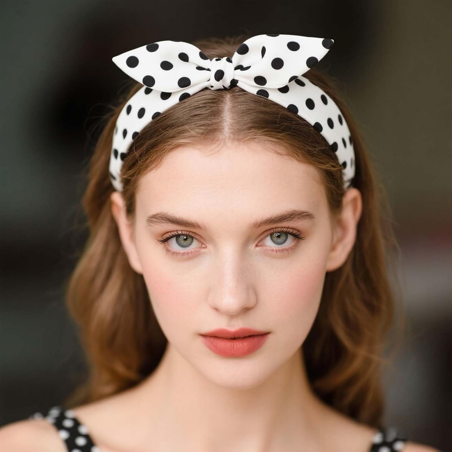 ①【Charming Design】: Our polka dot headbands for women’s hair feature a bow tie knotted design, giving a cute and fashionable bunny ear look. Available in three classic colours – red, black and white, these headbands add a playful touch to any outfit.