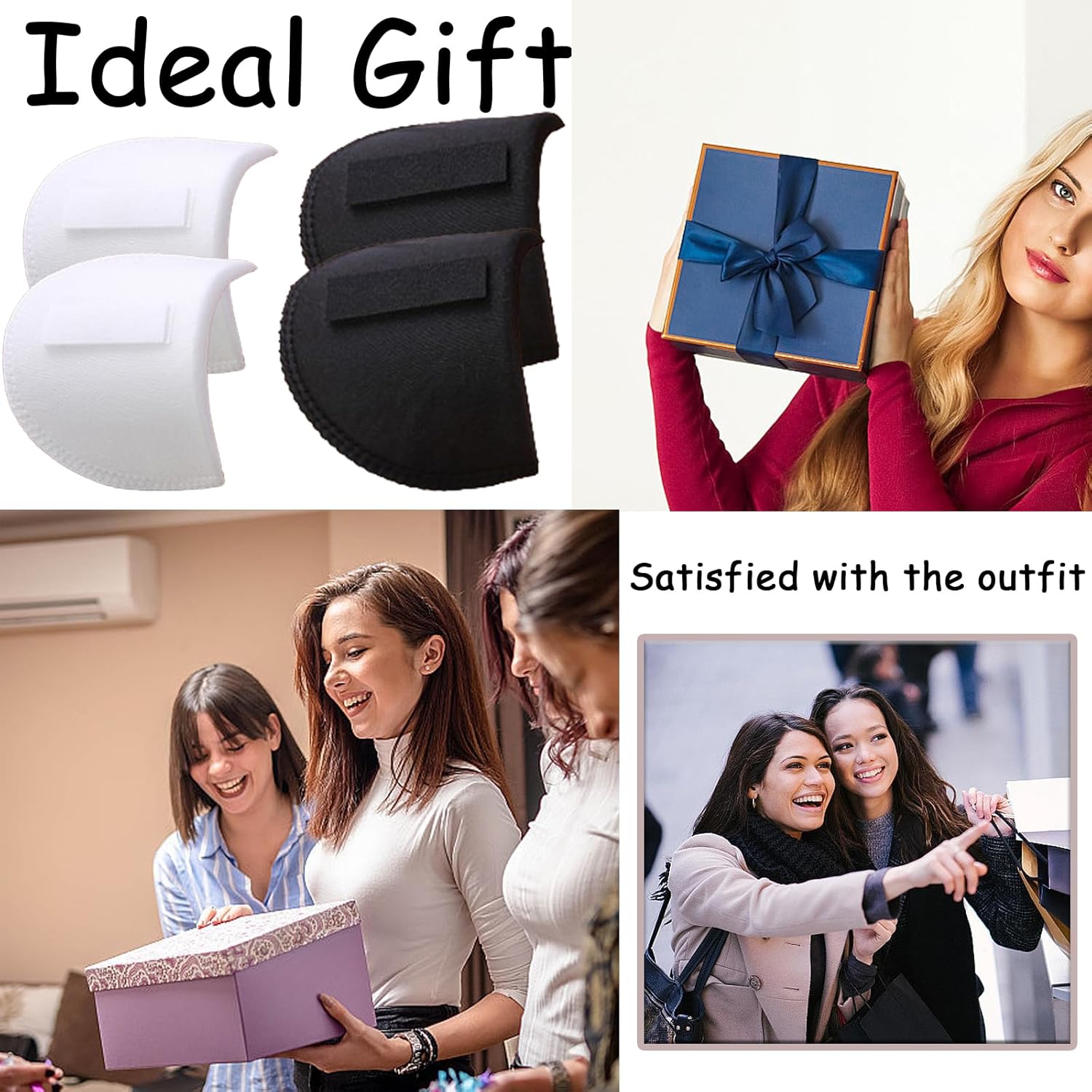 ๐Package: Pack includes 4 shoulder pads for women clothes, with 2pcs in black and 2pcs in white.The length of the solder pad is 15cm, about 9cm wide, and 1cm thick.The shoulder pads fit the shape of the human body’s shoulders and are not easy to fall off, making them very suitable for daily use.