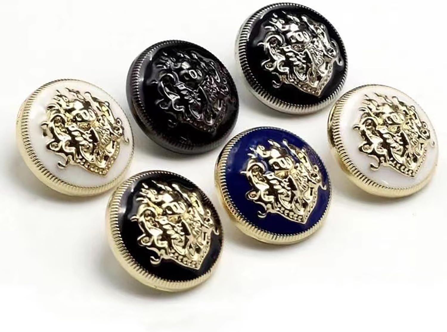 Material:Made of metal,durable, sturdy and practial enough. Many Sizes for you to choose:15/18/20/22/25mm. Please check the size of buttons carefully to suitable for your clothes. Package include: 5 pcs button.Color:Black Gold/Golden/White Gold. Technics:Engraving Copper Shape:Round. Usage:There are three colors and every color has four sizes for you to choose.They are enough for your daily use or DIY creation.Different sizes can suit your different size of clothes.It’s very durable. Light and easy to store. The buttons are usually used for making crafts, coats decoration or DIY, are very practical.You will very love them. There are some patterns on these buttons,suitable for decorating vintage clothing, you can use it.