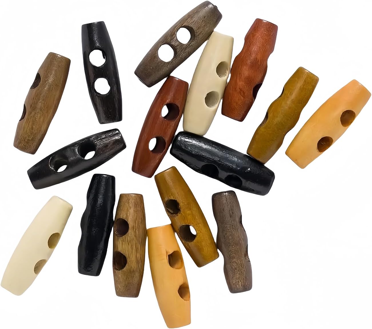 5 pcs Olives Buttons – 2 Hole Wood Toggle Sewing Craft DIY Accessory for Clothing Coat Jacket Blazer Bag