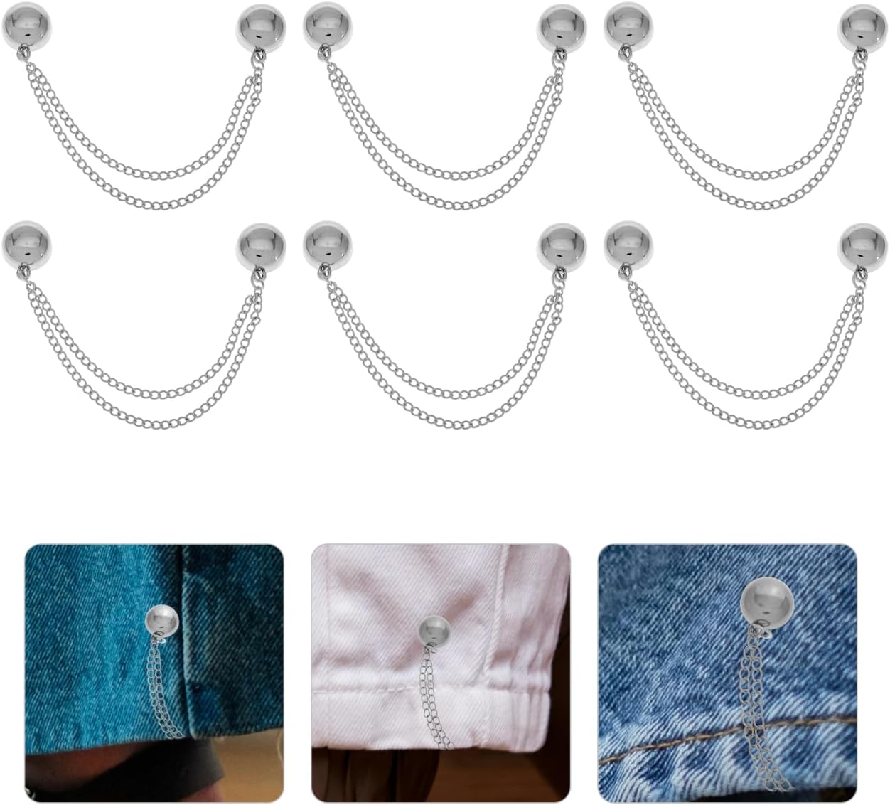 6pcs Magnetic Clothing Clips Multi-Purpose Magnetic Cardigan Clips Removable Dress Pins Pants Leg Fixed Magnets with Chain for Scarves T-Shirt Trousers Hijab