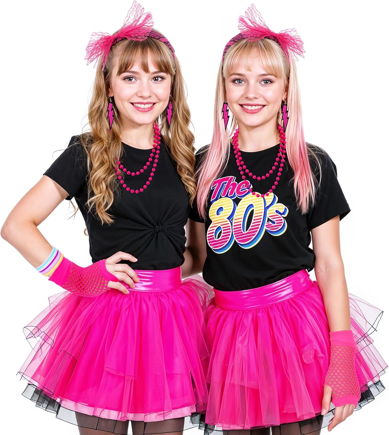 80s Fancy Dress Costumes Accessories, 1980s Headband, Errings, Fishnet Gloves, Necklace, Bracelt, Leg Warmers, Party Outfit Set for Women Halloween