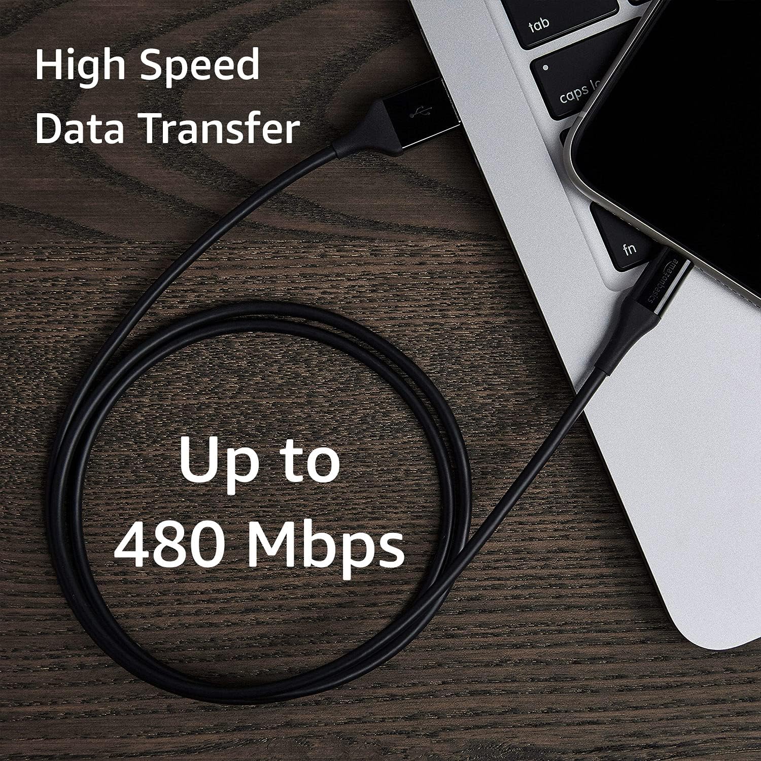 The cable quickly charges devices and transfers data at speeds up to 480 Mbps.