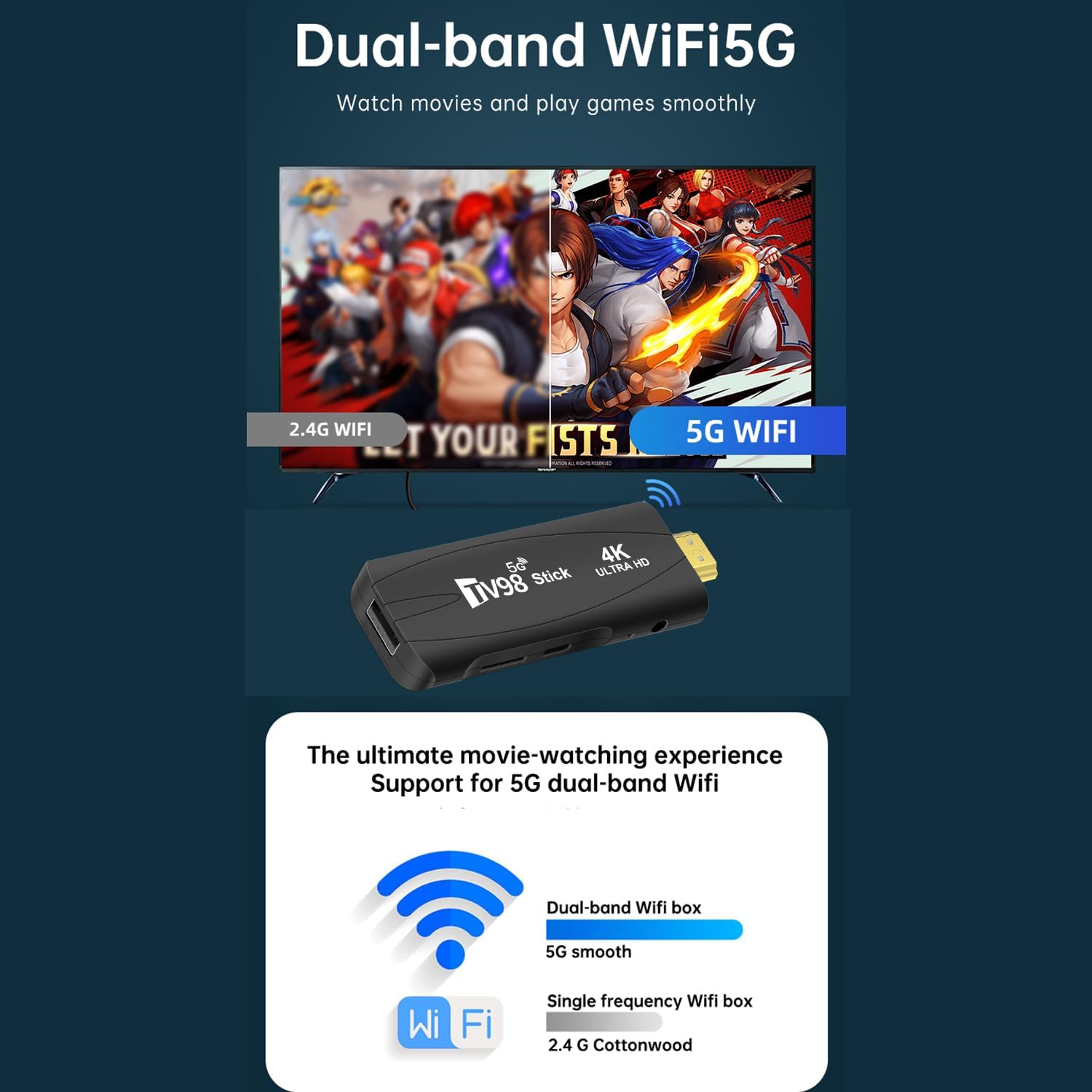 【Faster 2.4G 5G WiFi+BT5.0】Smart TV STICK supports 2.4G/5.8G two-WiFi,802.11 b/g/n/AC wifi is about 5 times faster than 802.11 b/g/n wifi, this is Real 5G wifi,if you like to use 5G wifi ,it exactly match your needs.Stable, Fast and High Quality WIFI signal,make sure enjoy a higher quality to browse websites, play games, run programs, watch movies .