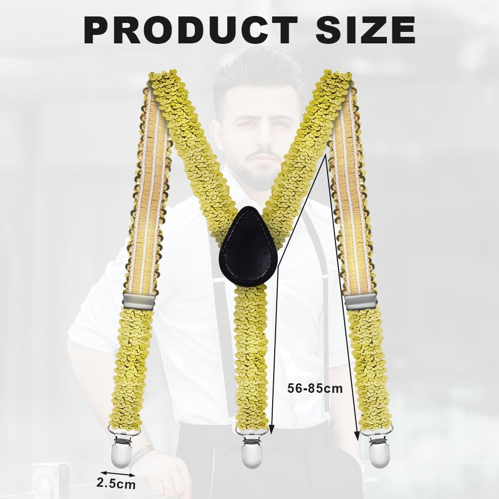 -The men’s sequin suspenders are easy to put on and take off, and are comfortable to wear. The size is suitable for most adults, and the individual parts can be easily combined.