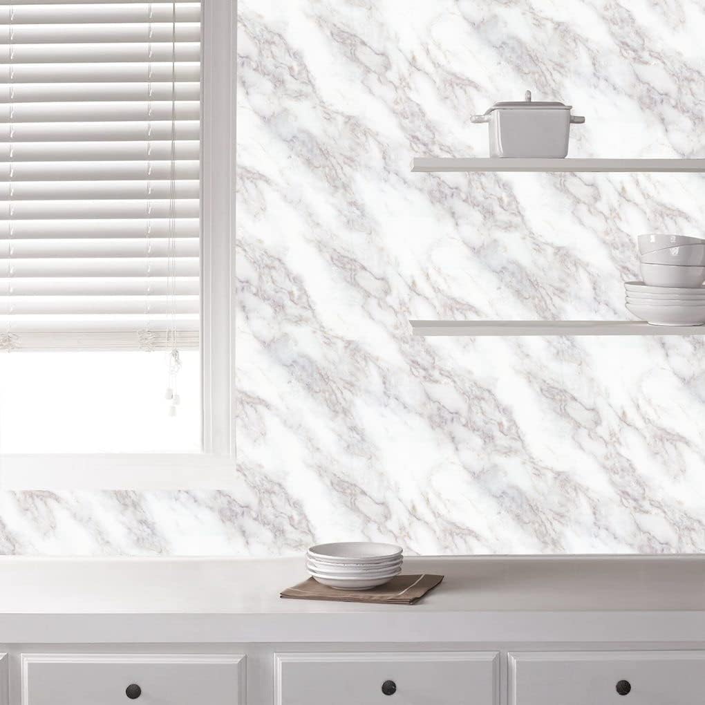 【DURABLE MATERIAL】This White Gold Marble Contact Paper made of high-grade thicker decorative Vinly Film and safe glue, free of heavy metals, Waterproof and Oil-proof contact paper, durable and easy to clean.