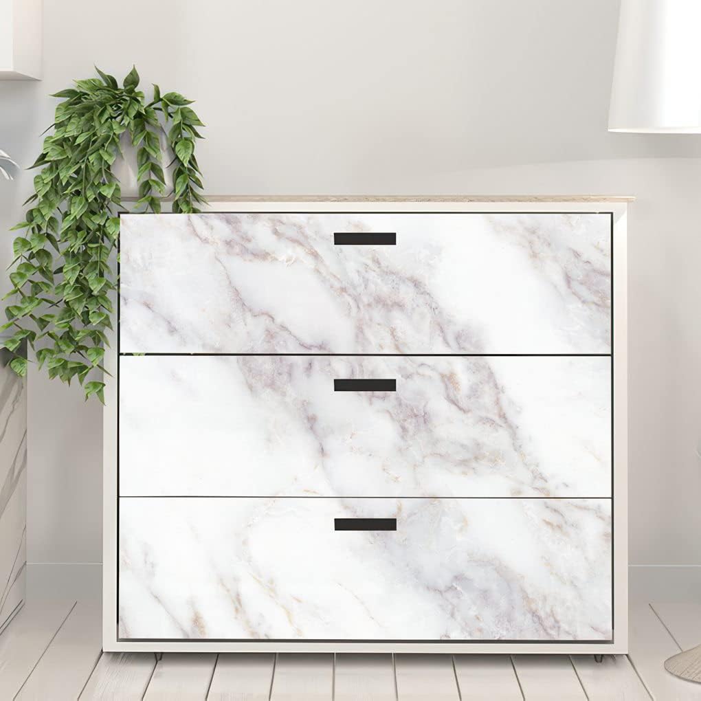 【MULTI PURPOSE USE】The Marble Contact Paper, ideal decorative film for DIY or Refurbished any size furniture surfaces,such as cabinets, countertops, dresser drawers, handicrafts, nightstands, bookcases, shelves, doors etc, It is also a nice wallpaper for decoration your walls.