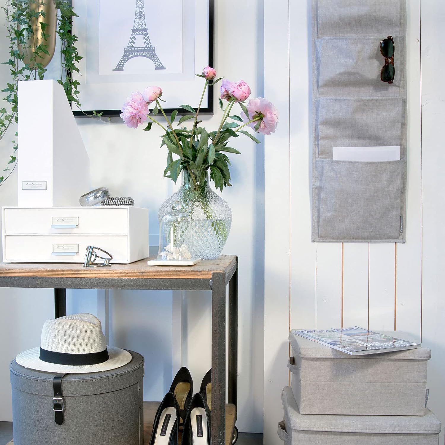 DURABLE MATERIALS: For a robust as well as durable design, the hanging shoe storage organiser is made of polyester and cardboard. The discreet beige finish also blends into any room.