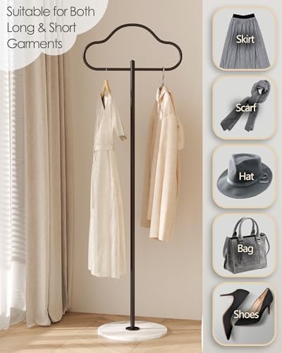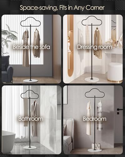 【EXCEPTIONAL STABILITY AND HIGH LOAD CAPACITY】Our clothes rack is made from 1.7mm thickened material,processed into 1-inch diameter iron pipes, and paired with an enlarged size matte marble base,reinforcing the rack’s stability in every detail.With a load capacity of 95 pounds,the symmetrical cloud structure effectively prevents the rack from leaning to one side.