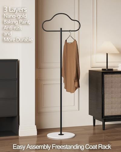 【THICKENED MATERIALS & RUST-RESISTANT TRIPLE-LAYER PAINT BAKING】The black coat rack frame is constructed from thickened carbon steel,ensuring enhanced load-bearing capacity and resistance to deformation.Its exterior is coated with a 3 layers high-temperature nano paint,delivering an elegant color with no odor.This paint stability surpasses that of ordinary spray-painted racks,maintaining its integrity for over 10 years of regular use.